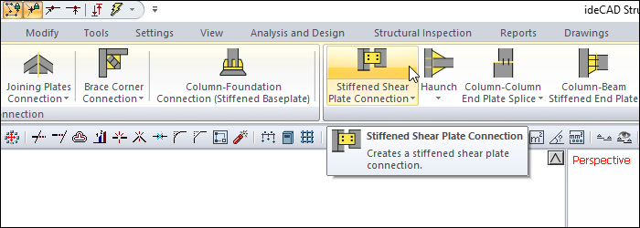 From the Connection menu, click on the Stiffened Shear Plate Connection.