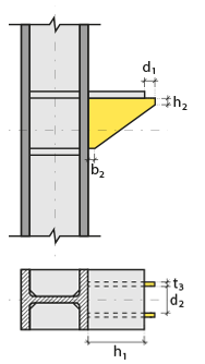 Stiffener plates ![]() The dimensions of the stiffener plate are determined by entering the values. The values to be entered are shown in the schematic drawing. |