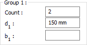Group 1 ![]() Distance values of bolts to beam and other bolts are entered. The values to be entered are shown in the schematic drawing. |