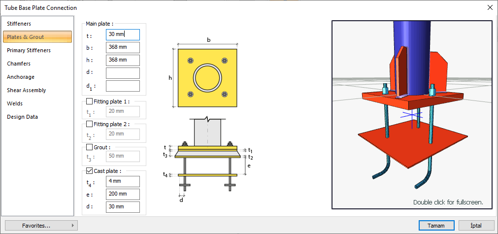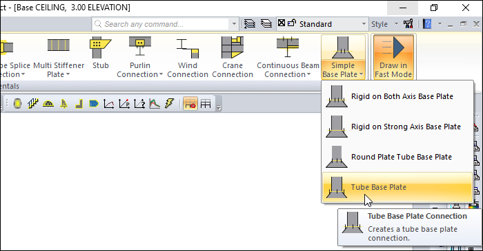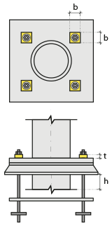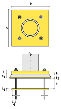 With the Tube Base Plate command, steel column-foundation connections are defined.
