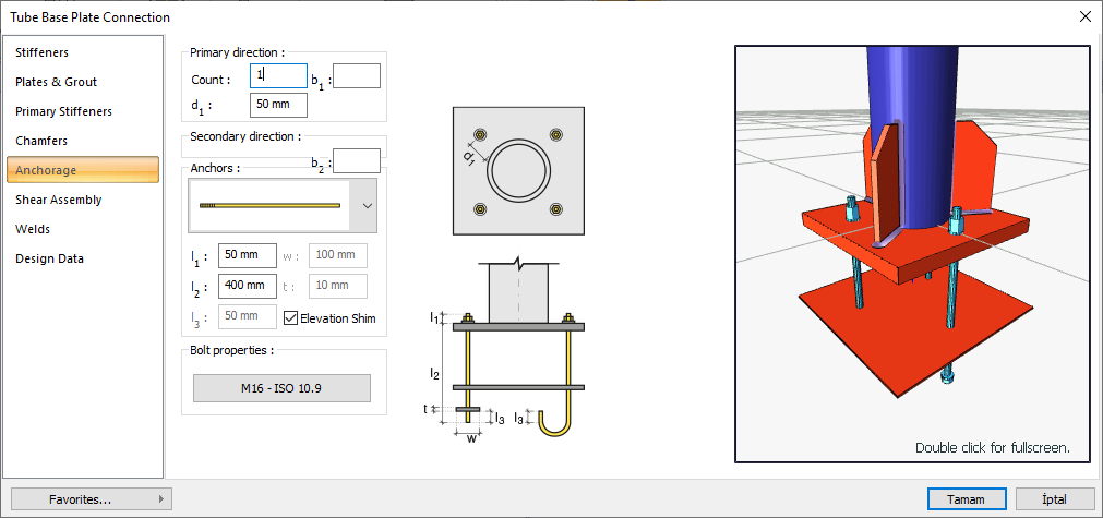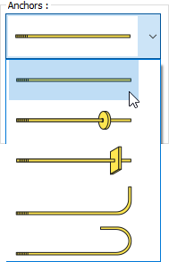 Anchors ![]() ![]() Anchor type is selected from the list. Anchor dimensions are determined by entering values. The values to be entered are shown in the schematic drawing. |