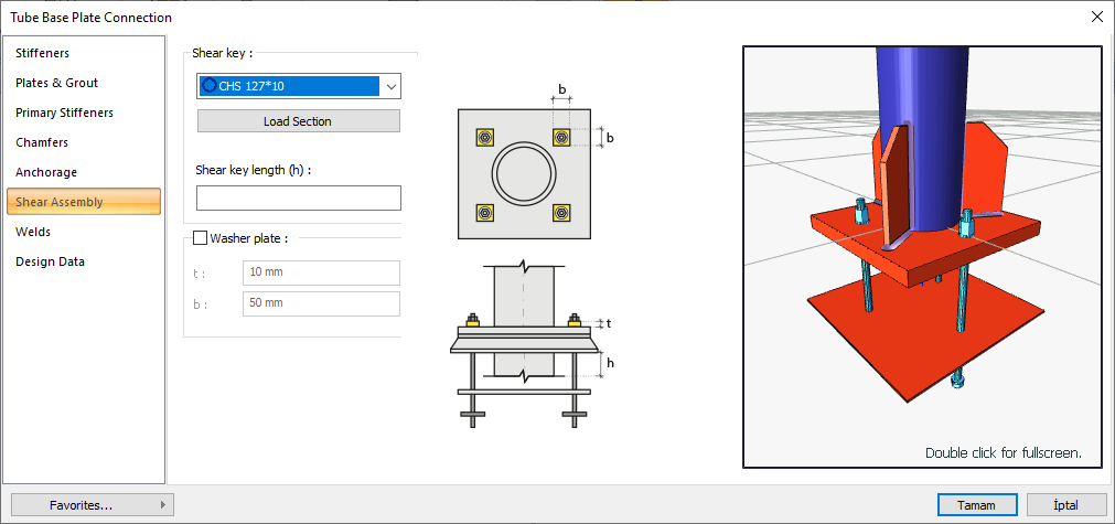Shear key ![]() One of the ready-made profiles is selected from the list as a shear key. By clicking on the Load section button, you can reach the ready section library and reach the list of American and European finished rolling sections and select from the list. |