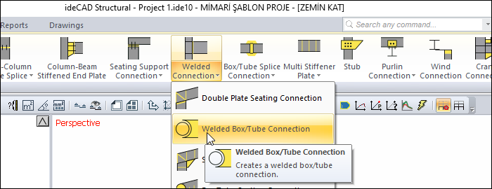 Welds ![]() The thickness, type and angle values of the welds to be made at the connections are given. The information on whether it will be done on the construction site or not is entered. |