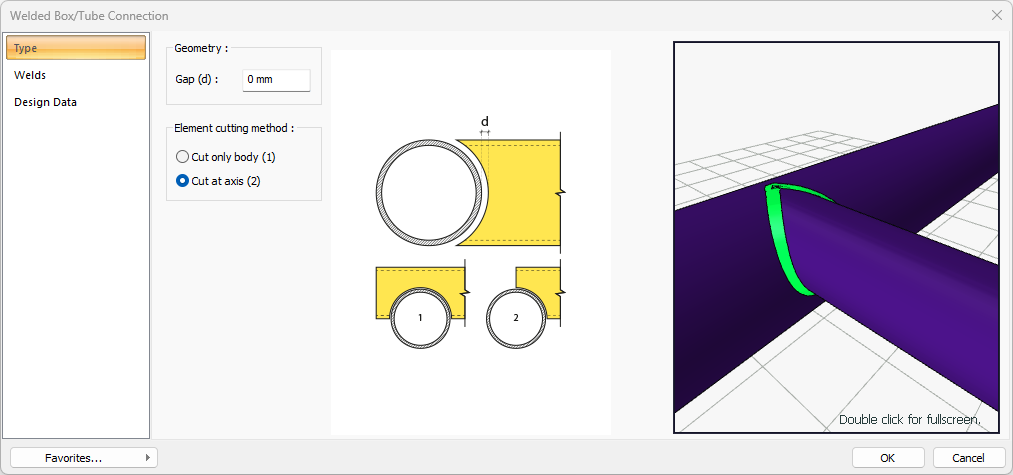 With the Welded Box/Tube Connection command, column-beam and beam-beam connections are defined.