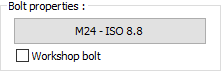 Bolt properties ![]() The Hole and Bolt Parameters dialog is opened by clicking on the bolt properties button. The bolt properties are set in this dialog. |