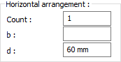 Horizontal arrangement ![]() Horizontal arrangement settings (number of horizontal bolt columns, distance values ..) of support bolts are entered. The values to be entered are shown in the schematic drawing. |