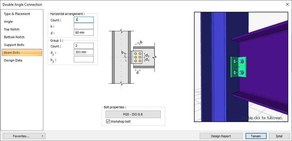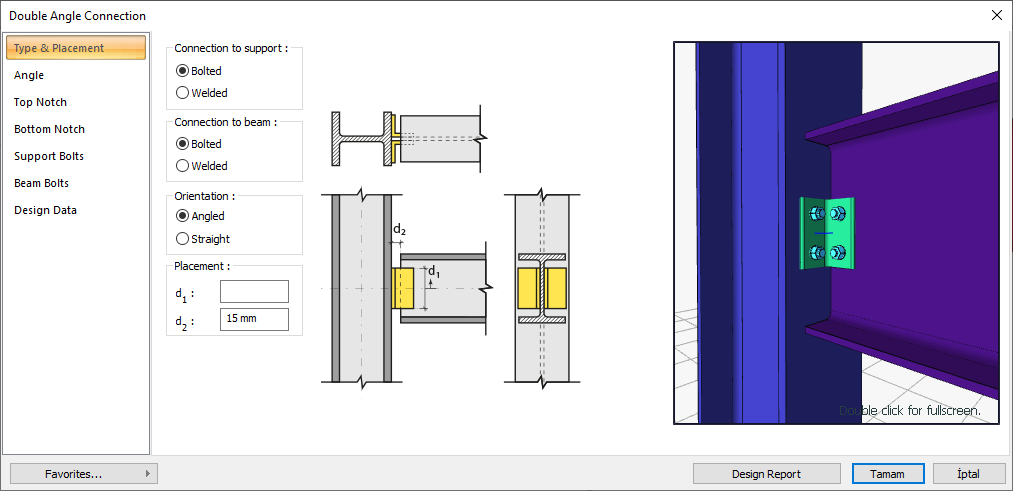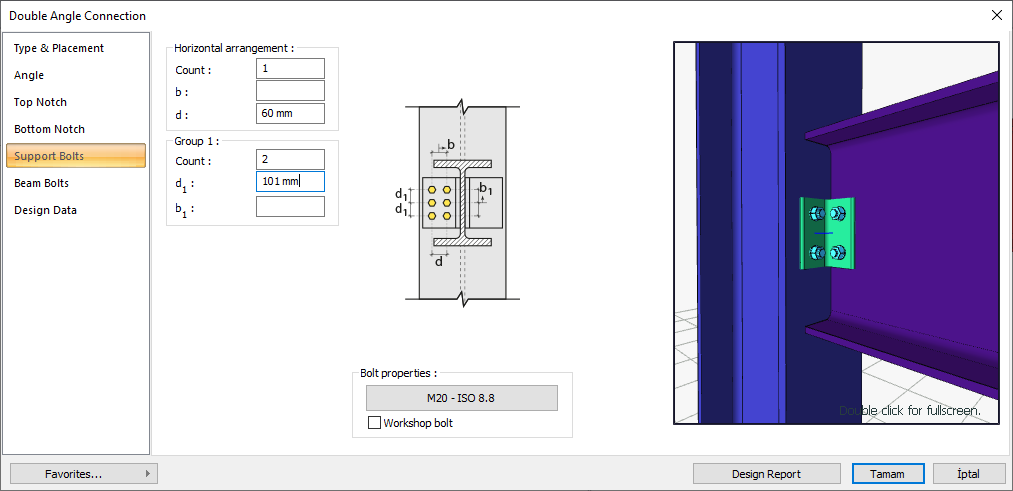Connection to beam ![]() Bolted or welded connection types are selected for the beam connection. |