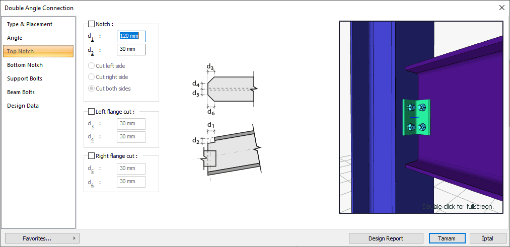 Welds ![]() The thickness, type and angle values of the welds to be made at the connections are given. The information on whether it will be done on the construction site or not is entered. |