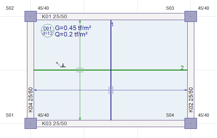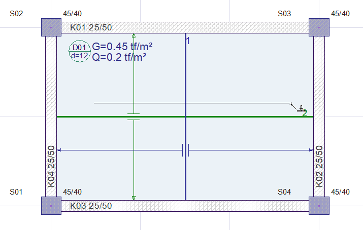 Creating the starting point of the linear slab load by clicking the left mouse button ![]() |