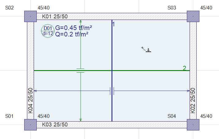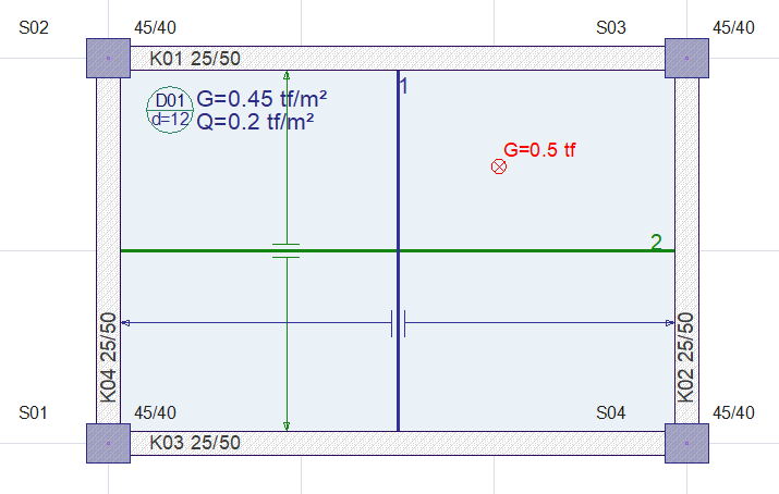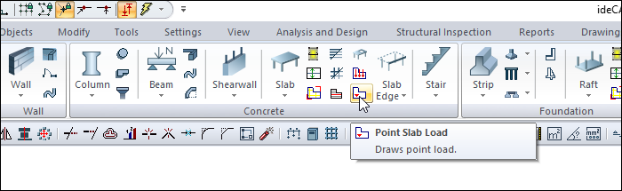 With the Point Slab Load command, a single load is defined on the slab. The load values of the point slab load are defined in the Point-Linear Load Settings dialog.
