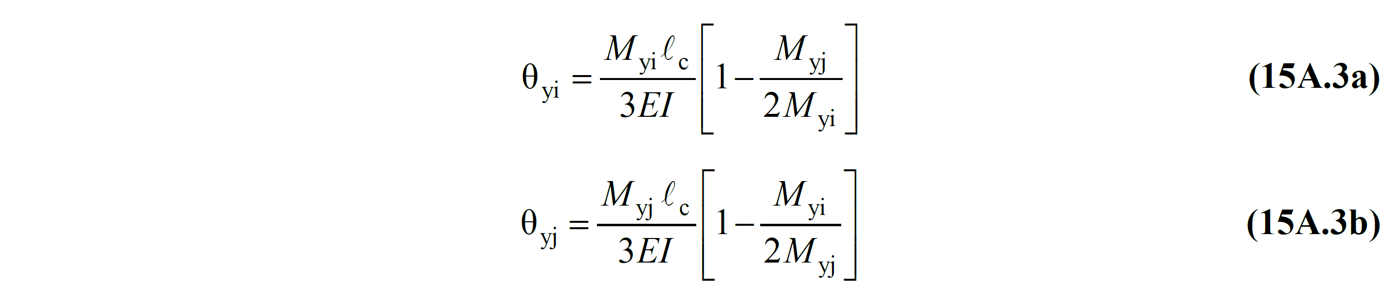 In Eq. (15A.3) , EI is the bending stiffness of the uncracked section , M yi and M yj are the effective yield moments at the i and j ends , respectively. The directions of the yield moments are counterclockwise plus, and minus clockwise. Therefore, Equation (15A.3) includes both double and single curvature bending cases. The effective yield moment M y , Annex 5A.1 'will be obtained according to the definition given.