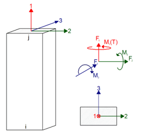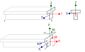 Looking at a beam in the plan is the axis 1 axis parallel to the beam, and the perpendicular axis 3 axis in the planand the vertical axis perpendicular to the working plane should be considered as the 2 axis. Left end is i, right end is j.