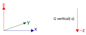 The fixed weight, G, is downward in the Z minus (-) direction.