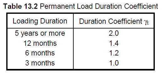 The coefficient, γt, in the above equation, which depends on the duration of the permanent loading, can be