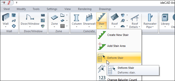 Click the Deform Stair icon in the ribbon menu .