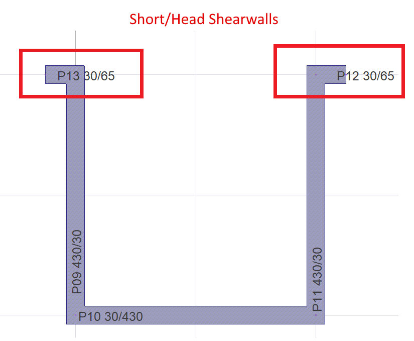 Short/head shearwall are taken into account in the shear strength calculation of the shearwall group.
