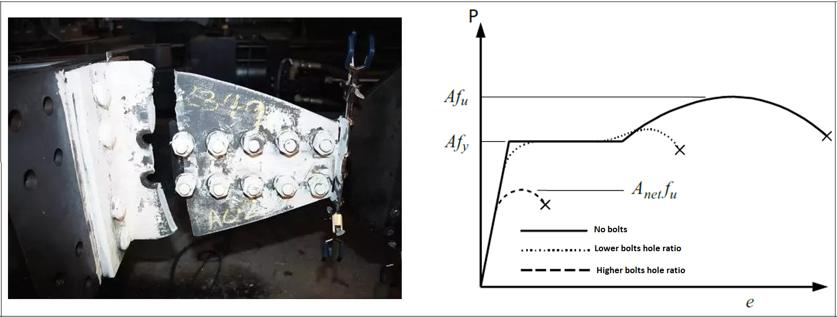 Tension members are structural elements that transmit the axial tensile forces. If tension elements are used together with bolted joints, yield stress will be reached earlier in the areas where bolt holes are located. This situation will affect the strength determined by using the load-displacement curve.