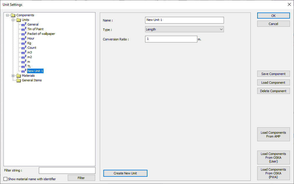 Load component ![]() Previously defined units or materials are loaded from the archive. |