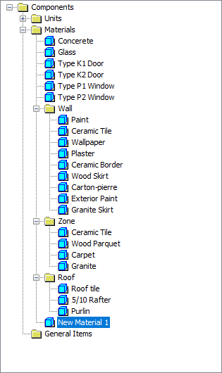 Components list ![]() The components, units and materials that exist in the project are listed. |