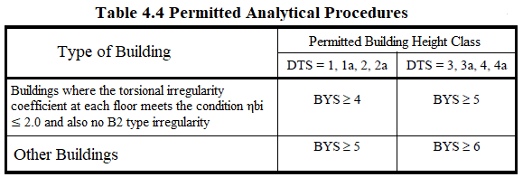 In TBDY 2018 Table 4.4, there are conditions related to the buildings where the Equivalent Earthquake Load Method among the Linear Calculation Methods can be applied.