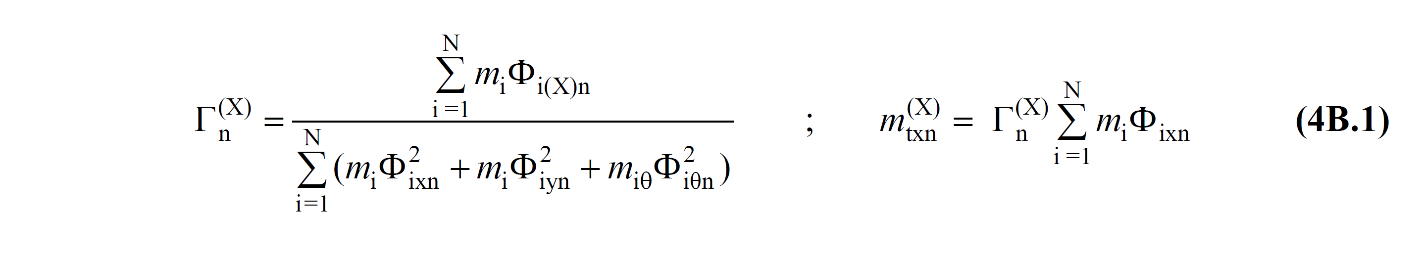 m tx1 (X,1) is the modal effective mass obtained in the first mode of the modal analysis , the value of which is taken into account in the initial step where second-order effects are taken into account, and it is found by TDY Equation 4B.1 . The value of m tx1 (X,1) is calculated only for the first step and is the sum of the floor modal effective masses m tx1 (X,1) values taken as constant throughout the entire thrust calculation .