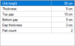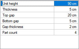 Bottom gap It determines how much the exterior veneer will overlap the gap. Gaps in the unit are calculated automatically according to the entered values. |
