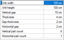 Vertical part count It determines how many pieces will be in the unit vertically. |