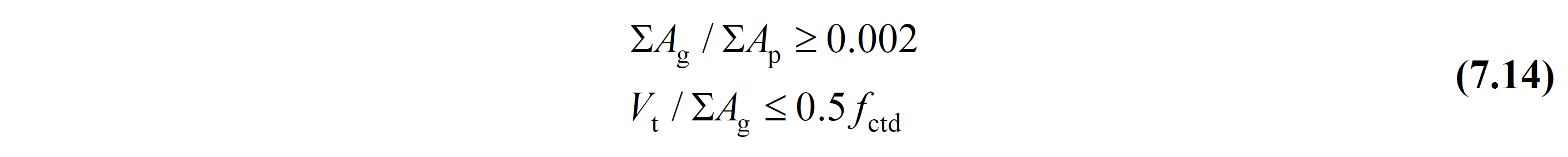 Equation (7.14) is applied at the ground floor level in buildings with very rigid reinforced concrete curtains around the basement floors, and at the level of the foundation top level in other buildings.