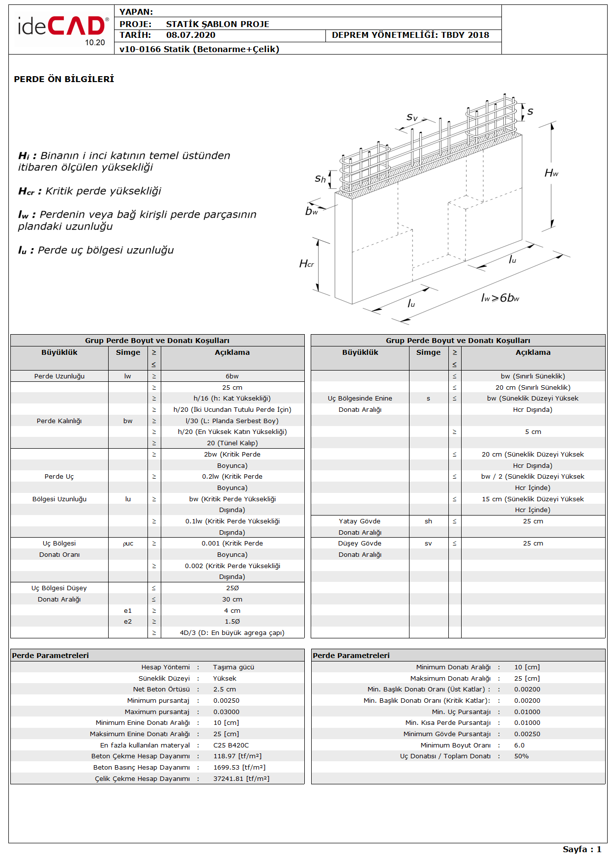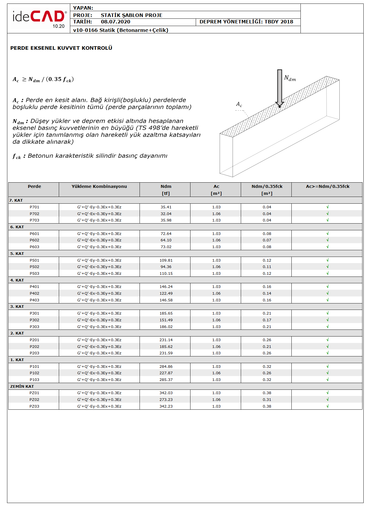 The axial pressure force control calculated under the joint effect of vertical loads and earthquake loads is done automatically A c ≥ N dm / (0.35 f ck ).