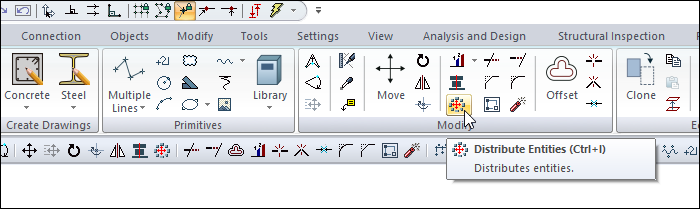 With the distribute entities command, objects are distributed in a single operation in architectural and structural projects. The selected objects are evenly distributed among themselves according to the selected distribution method.