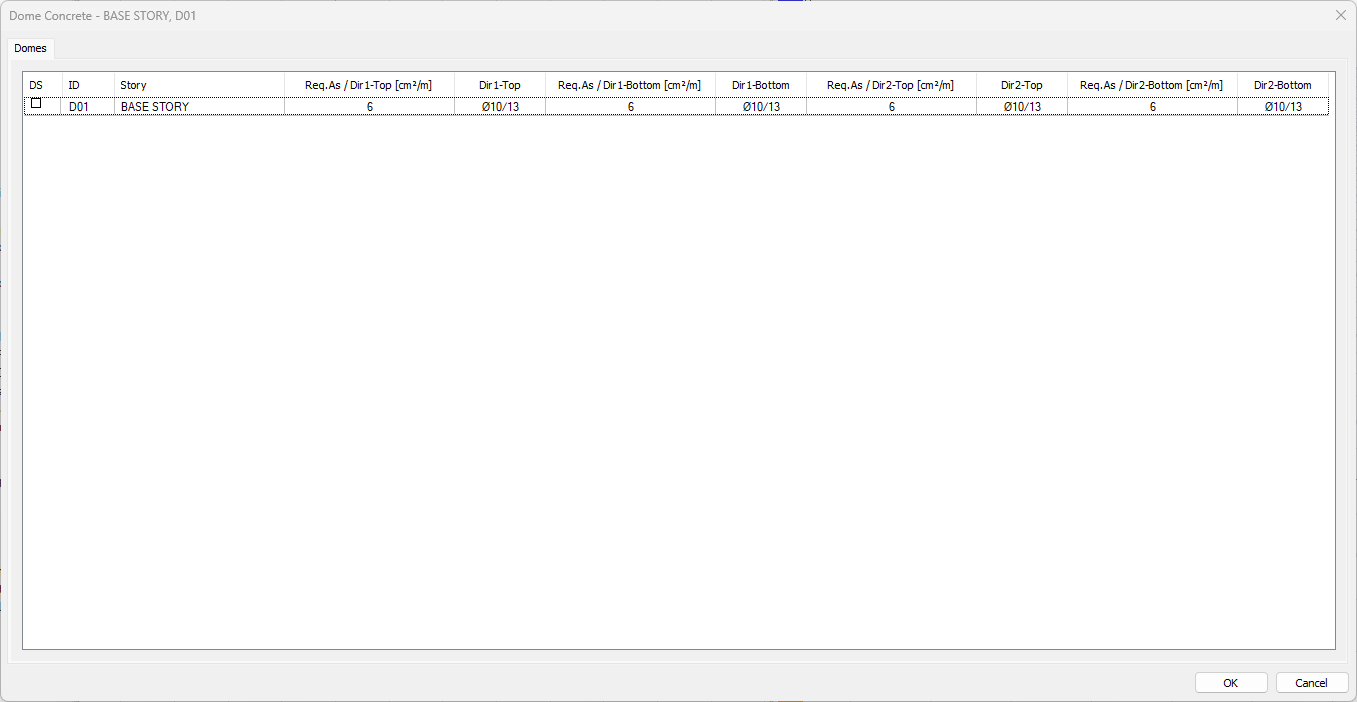 Req.As/Dir 1-Bottom ![]() It is the required reinforcement area calculated for direction 1-bottom in the dome. |
