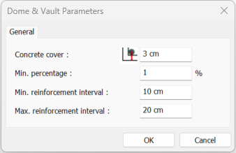 Min. reinforcement interval ![]() This parameter is taken into account when choosing rebar in domes and vaults. If the distance between two rebars is less than the minimum rebar spacing, the rebar diameter is increased. |
