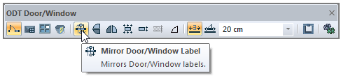 The Mirror Door/Window Label command that appears after the Door/Window command is run is available in the auxiliary toolbar.