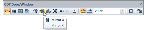 The "Mirror X" command is used to set the in-and-out opening direction of the door / window. In other words, the "Mirror X" command takes the symmetry of the door / window with respect to the wall axis. This process can be done during or after the door / window is installed.