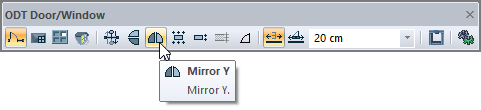 The "Mirror Y" command is used to adjust the right / left opening direction of the door / window. In other words, the "Mirror Y" command takes the symmetry of the door / window with respect to the door / window center axis perpendicular to the wall axis. This process can be done during or after the door / window is installed.