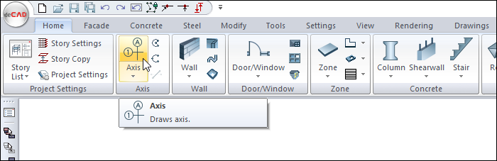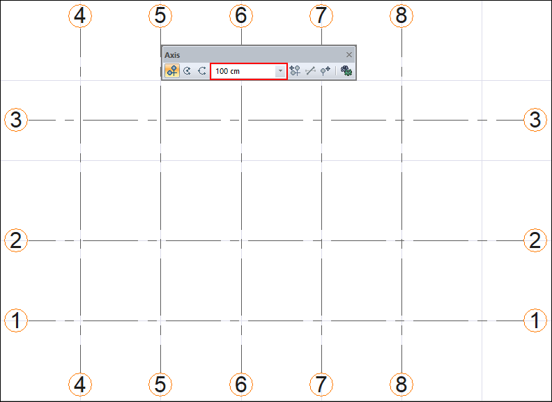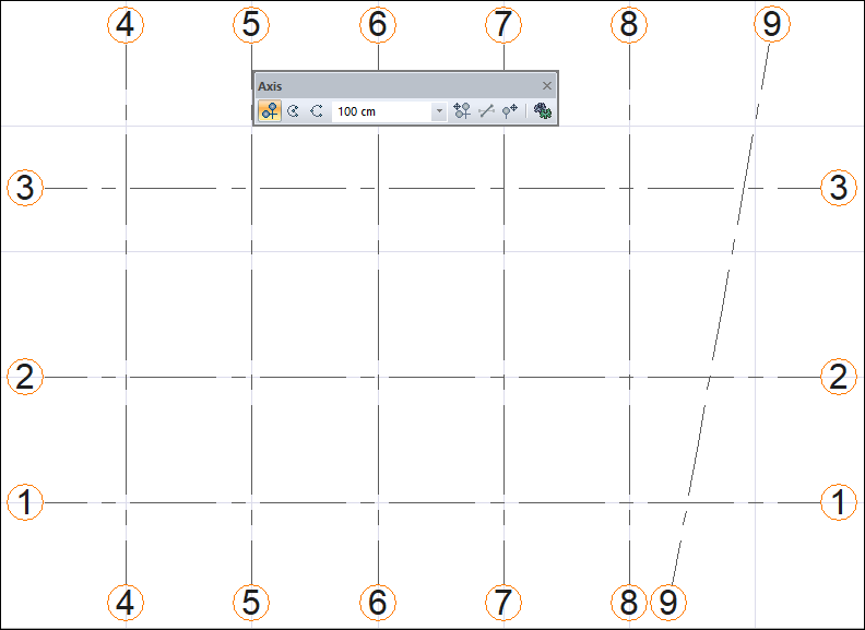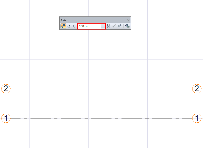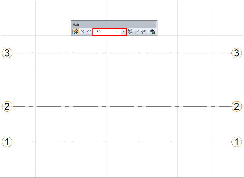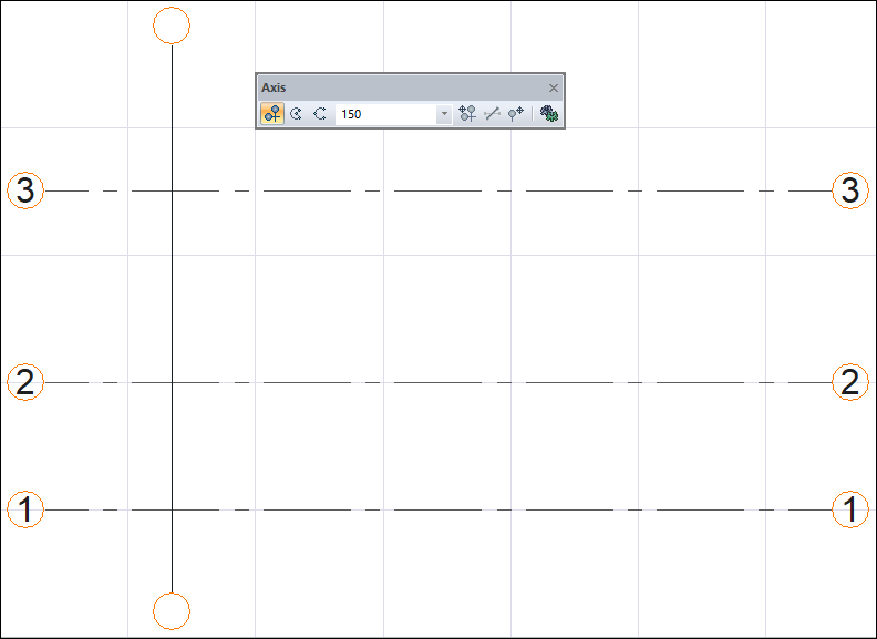 With the axis command, the axes are created practically in the project. Other axes are created by clicking the left mouse button or using the copy or axis offset command after the first axis is created.