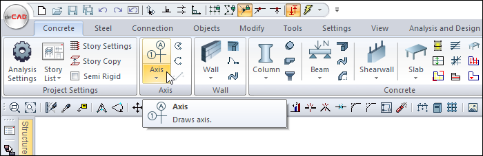 You can access it under the ribbon menu, Concrete tab, Axis heading.