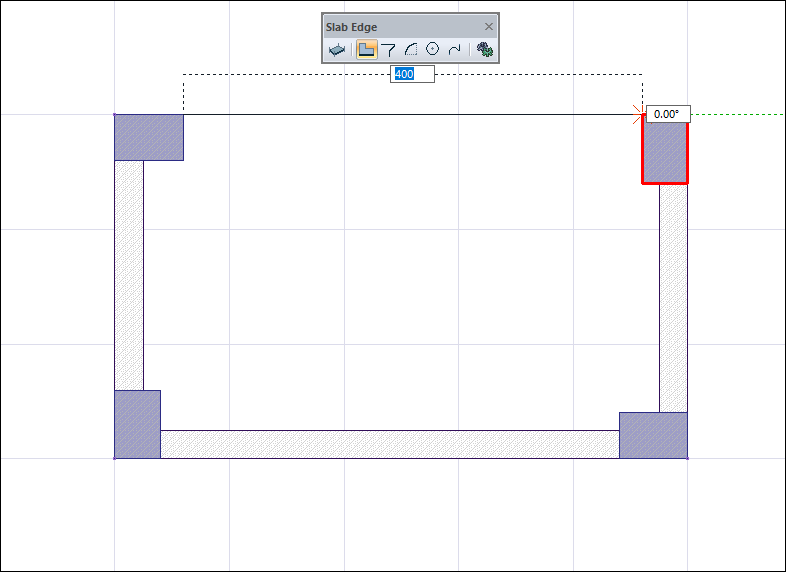 Click on the end of the column with the left mouse button in the drawing area. The first point of your slab edge will be formed.