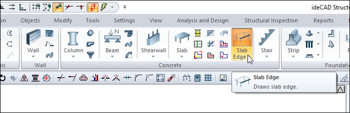 With the slab edge command, The boundaries of slabs not defined by beams and shearwalls are defined. The edges of the slabs are surrounded by beams, columns or shearwalls. In some cases (balconies, stair landings, etc.) some edges of the slabs are not covered with these elements, they are empty. In order to define slabs in these areas, slab boundaries must be defined by the slab edge.