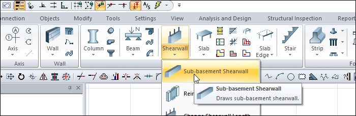 Click on the Sub-basement Shearwall icon from the ribbon menu .