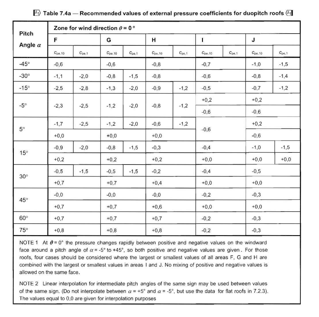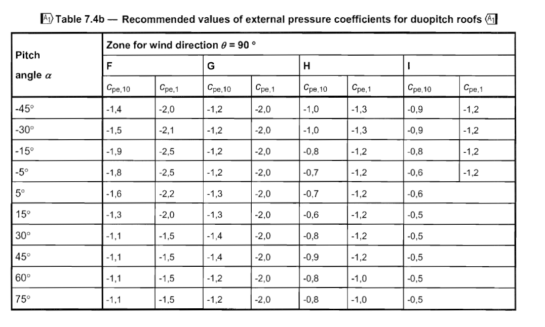 Pressure coefficients of duopitch roofs are calculated automatically.
