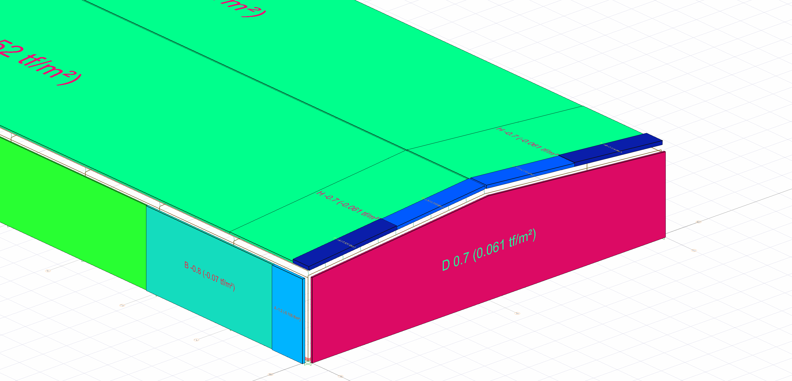 In the ideCAD software, the regions to which the pressure coefficients of duopintch roofs will be applied are calculated automatically.