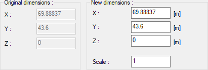 Original dimensions/New dimensions ![]() New dimension is defined to the drawing to be imported. When a value is entered in any row, other dimensions are automatically changed while preserving the original dimensions. The scale of the newly entered dimensions appears in the Scale row. |
