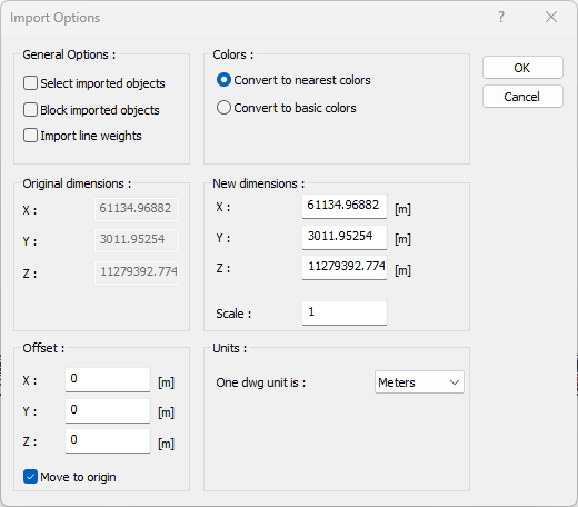 Move to origin ![]() If the option is selected, the lower left corner of the imported drawing is placed at the origin point. |