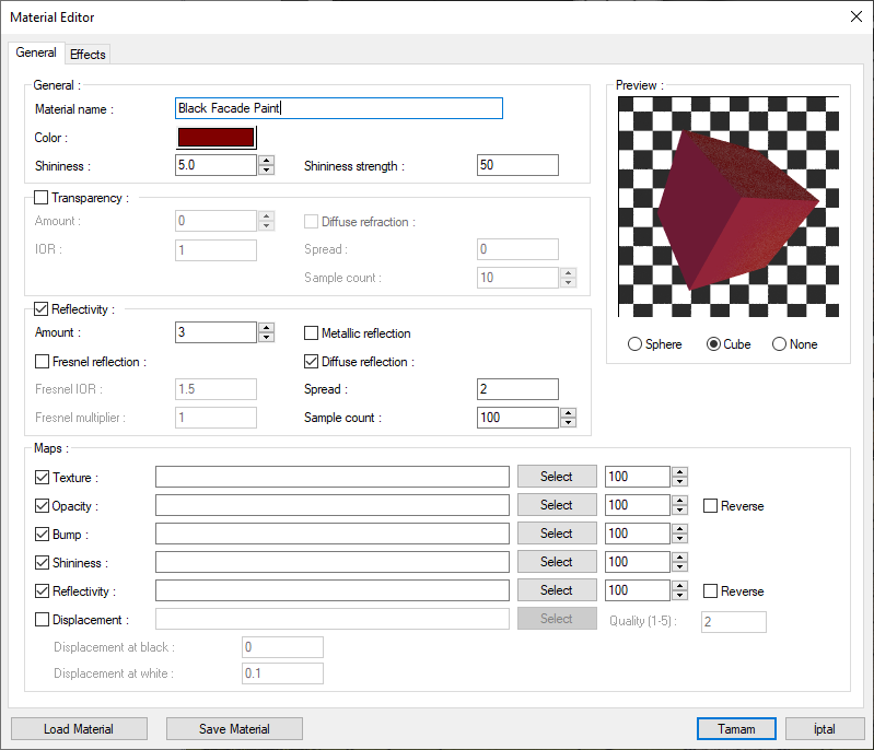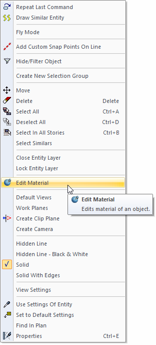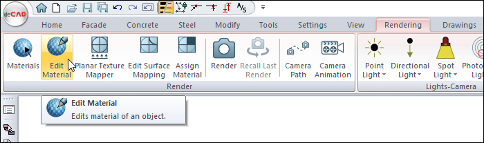 With the Edit Material command, the properties of the desired material can be changed on the 3D model.
