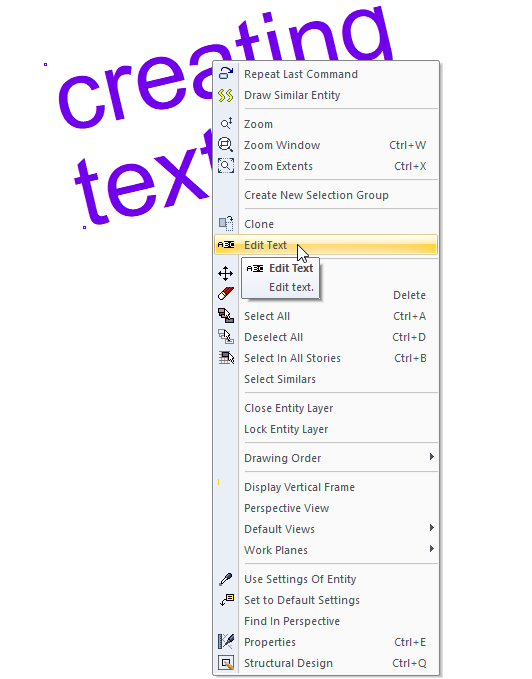 Location of the Edit Text Command