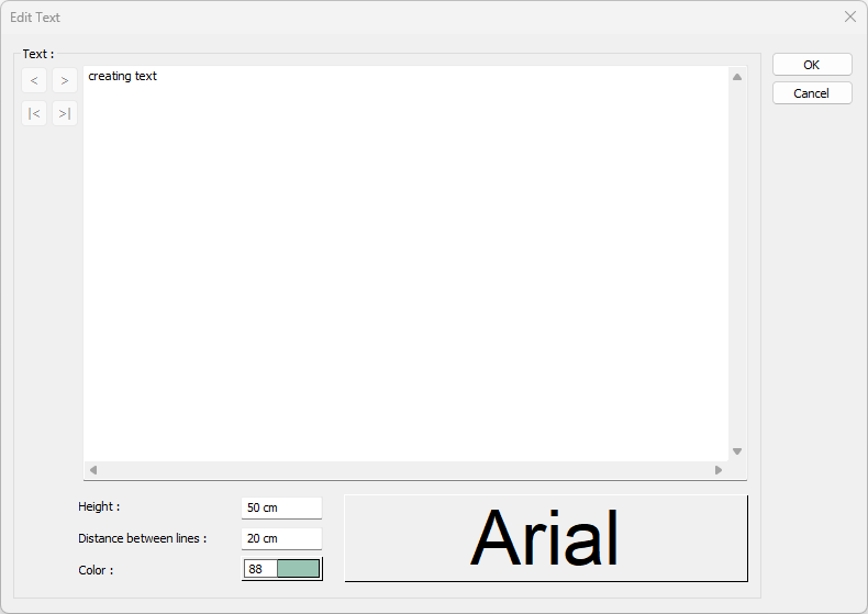 You can also access the edit text dialog by double-clicking on the text you want to change with the left mouse button. If you double-click on more than one text while it is selected, the text settings dialog opens.