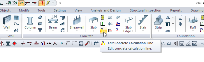 With the Edit Concrete Calculation Line command, the working style of the slab and the type of reinforcement are changed. As a result of the slab analysis, the way the slab works and what type of reinforcement will be used are automatically determined.