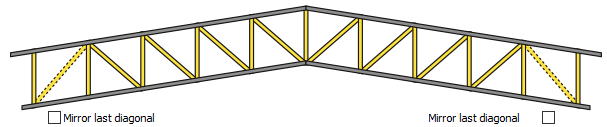 Mirror last diagonal ![]() Checking the option, the direction of the truss is changed by taking the symmetry of the last dioganal member. ![]() |
