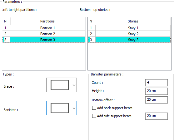 Scaffold view after changing banister height value to 60, bottom offset to 10 |